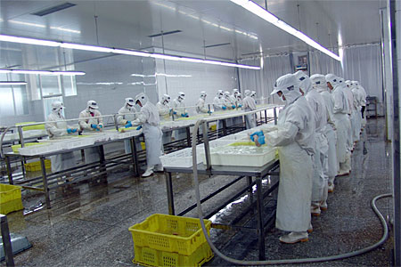 本公司是一家以水產品加工為主的出口型企業,于2004年9月建成并正式投產。公司廠房完全按照歐洲聯盟的標準設計施工,目前占地14000平方米,建筑面積8000平方米,其中加工車間1600平方米。公司日速凍能力達100噸,儲藏庫容量為5000噸,主要加工蟹類、貝類、頭足類及魚蝦類水產品,產品銷往日本、東南亞及歐盟地區。